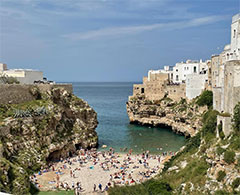 Discover Puglia—an enchanting land of whitewashed homes draped in colorful bougainvillea and olive trees thickened by centuries of growth. Situated between the Adriatic and Ionian Seas, Puglia is more reminiscent of Greece than Tuscany. Crystal clear water and golden beaches hug the shore. Traditional trulli homes with pointed roofs set in dried stone dot the rugged landscape. This area was once the center of the Mediterranean universe. Memories of its glorious past can still be seen in the palaces and churches, castles and fortress walls that adorn the towns.
